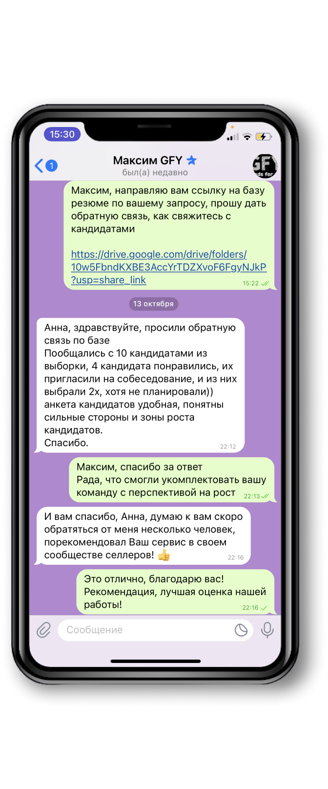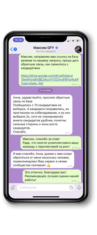 Индивидуальные рекомендации кандидатов продаются только пакетами, потому что обычно для подбора 1 сотрудника приходится общаться не менее чем с 10 соискателями.