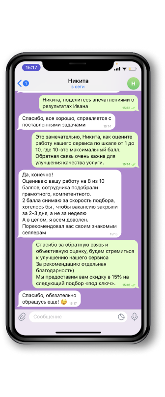 Наши специалисты самостоятельно проведут подбор оптимальных кандидатов и предоставят рекомендации по каждому, а также контакты того количества контактов, которое вы оплатили.
